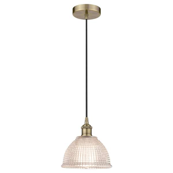 Arietta 60-Watt 1-Light Antique Brass Standard Mini Pendant Light with Clear Glass Shade, No Bulbs Included