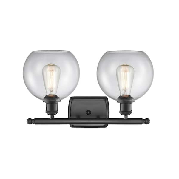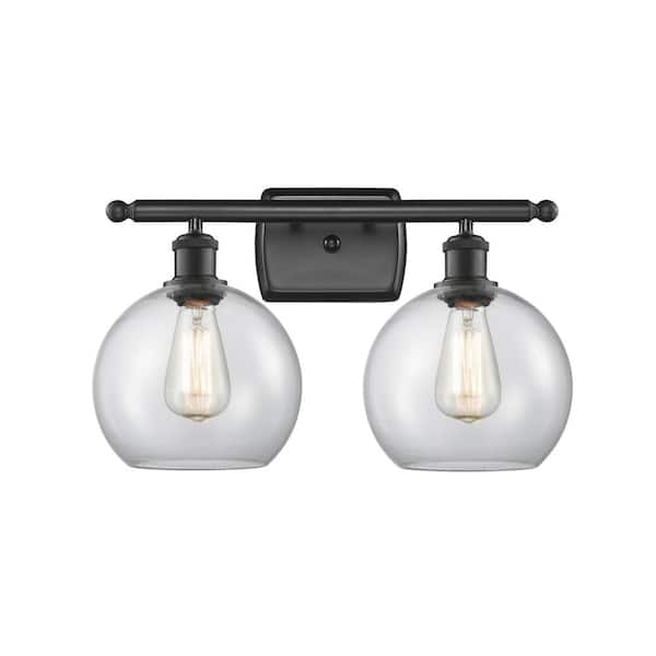 Athens 18 in. 2-Light Matte Black Vanity Light with Clear Glass Shade