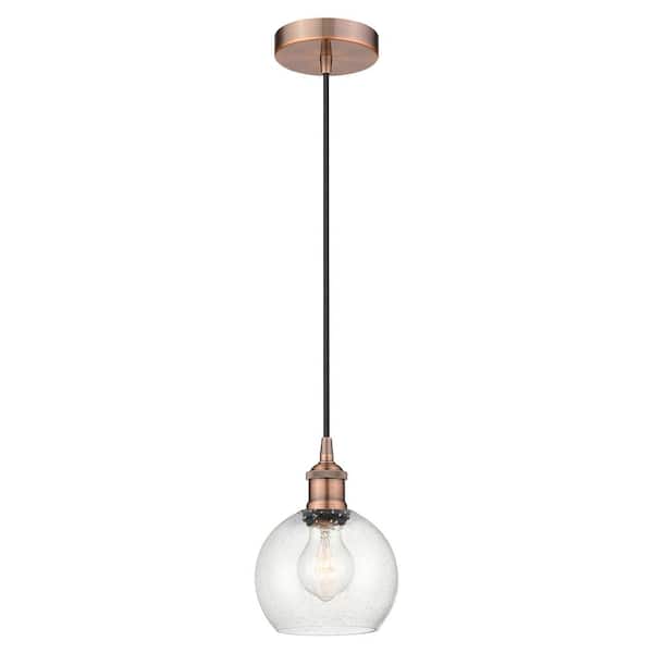 Athens 60-Watt 1-Light Antique Copper Standard Mini Pendant Light with Seeded Glass Shade, No Bulbs Included