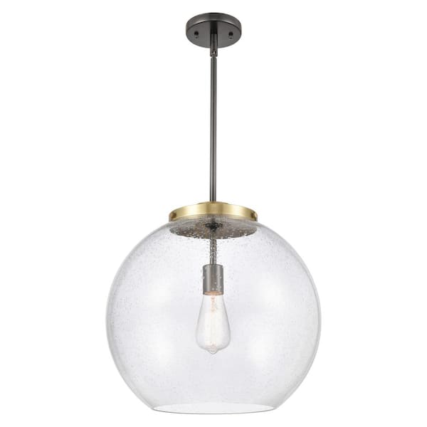 Athens 60-Watt 1-Light Black Antique Brass Shaded Mini Pendant Light with Seedy Glass