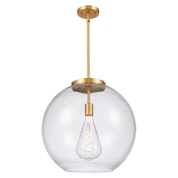 Athens 60-Watt 1-Light Satin Gold Shaded Mini Pendant Light with Seedy Glass