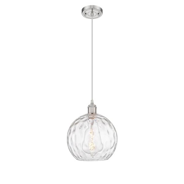 Athens Water Glass 1-Light Brushed Satin Nickel Globe Pendant Light with Clear Water Glass Shade