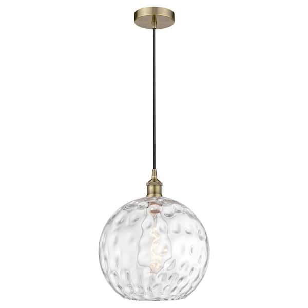 Athens Water Glass 60-Watt 1-Light Antique Brass Standard Mini Pendant Light with Clear Glass Shade, No Bulbs Included