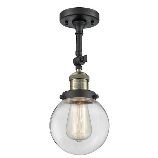 Beacon 1-Light Black Antique Brass, Clear Wall Sconce with Clear Glass Shade