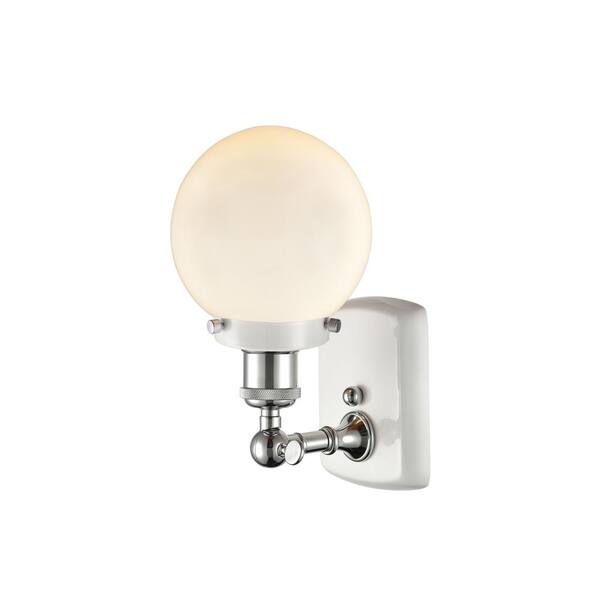 Beacon 1-Light White and Polished Chrome, Matte White Wall Sconce with White Glass Shade