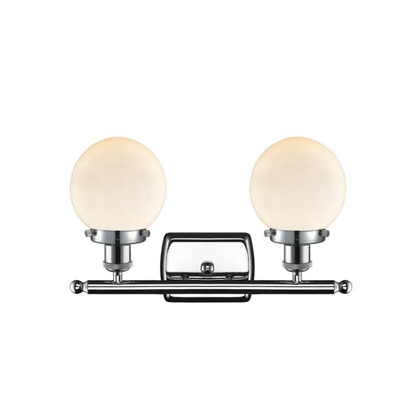 Beacon 16 in. 2 Light Polished Chrome, Matte White Vanity Light with White Glass Shade