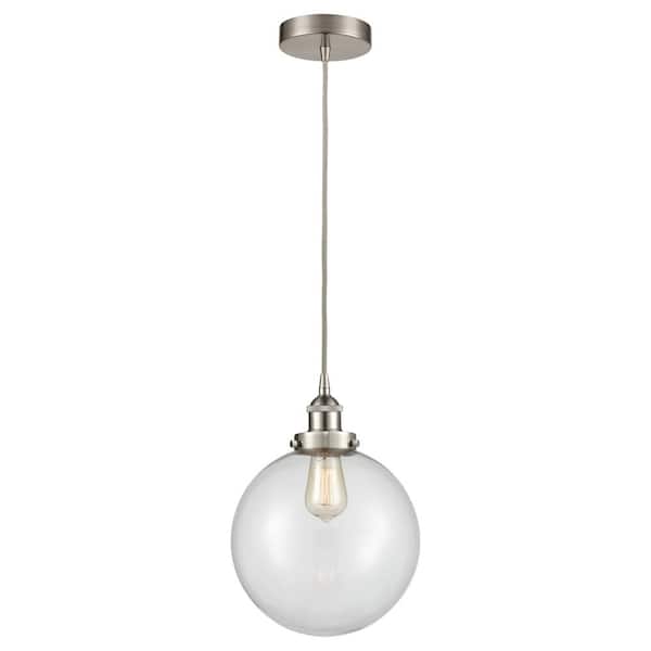 Beacon 60-Watt 1-Light Brushed Satin Nickel Standard Mini Pendant Light with Clear Glass Shade, No Bulbs Included