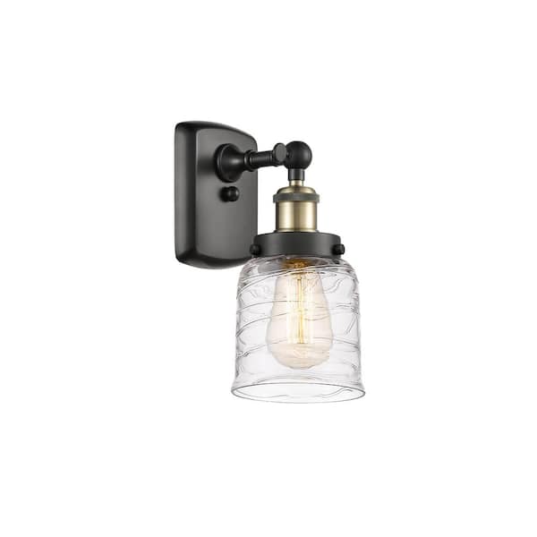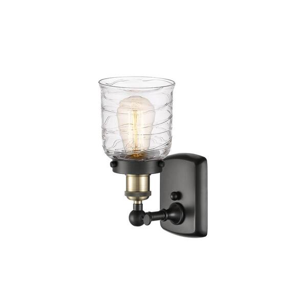 Bell 1-Light Black Antique Brass, Deco Swirl Wall Sconce with Clear Glass Shade