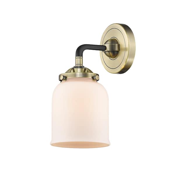 Bell 1-Light Black Antique Brass, Matte White Wall Sconce with White Glass Shade