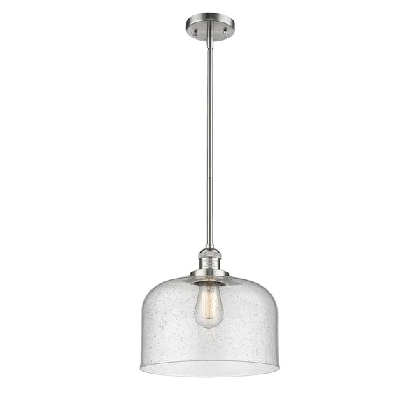 Bell 1-Light Brushed Brass Bowl Pendant Light with Seedy Glass Shade