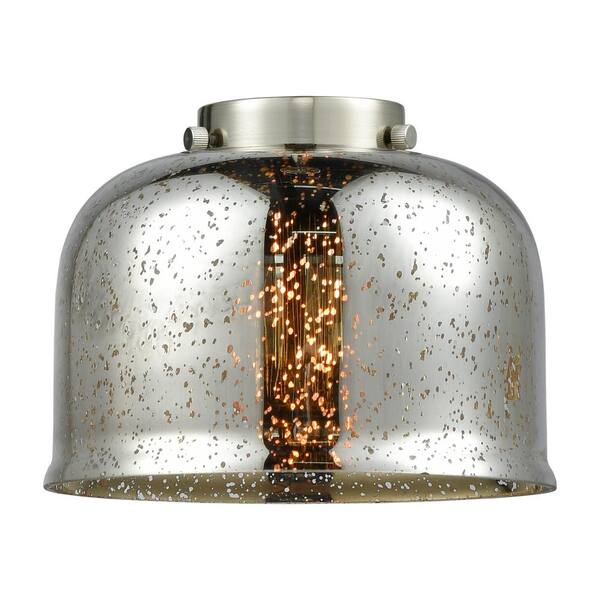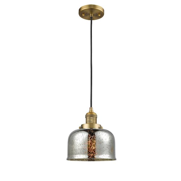 Bell 1-Light Brushed Brass Bowl Pendant Light with Silver Plated Mercury Glass Shade