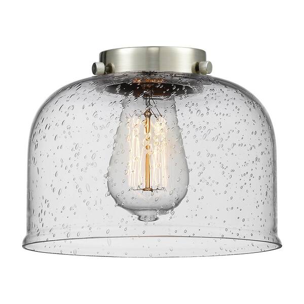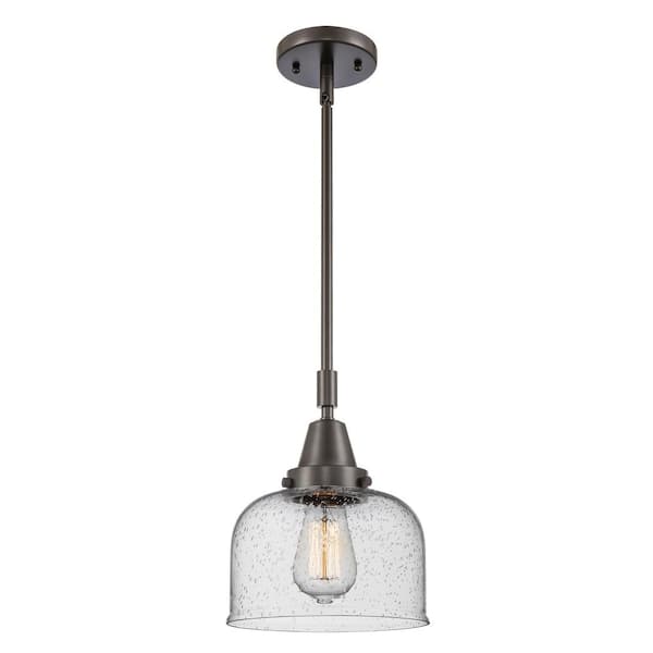 Bell 1-Light Oil Rubbed Bronze Shaded Pendant Light with Seedy Glass Shade