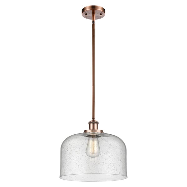 Bell 100-Watt 1-Light Antique Copper Shaded Mini Pendant Light with Painted Glass Shade