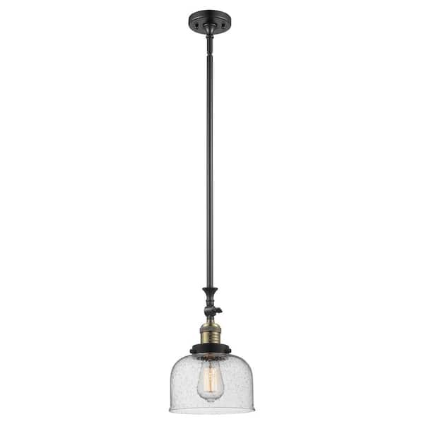 Bell 100-Watt 1-Light Black Antique Brass Standard Mini Pendant Light with Seeded Glass Shade, No Bulbs Included