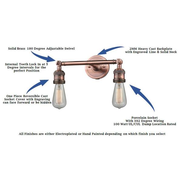 • Requires (2) 60 Watt E26 medium base bulbs (not included)