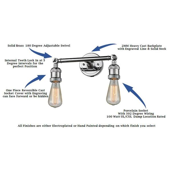 Bell 19 in. 2 Light Clear, Polished Chrome Vanity Light with Clear Glass Shade