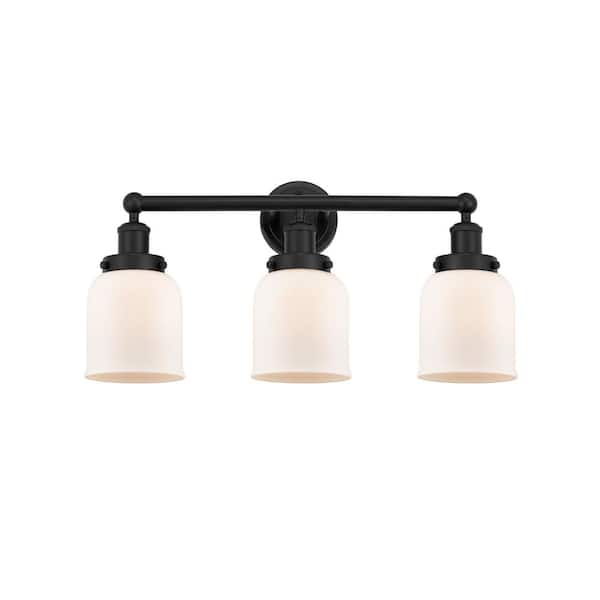 Bell 24.5 in. 3-Light Matte Black, Matte White Vanity Light with White Glass Shade