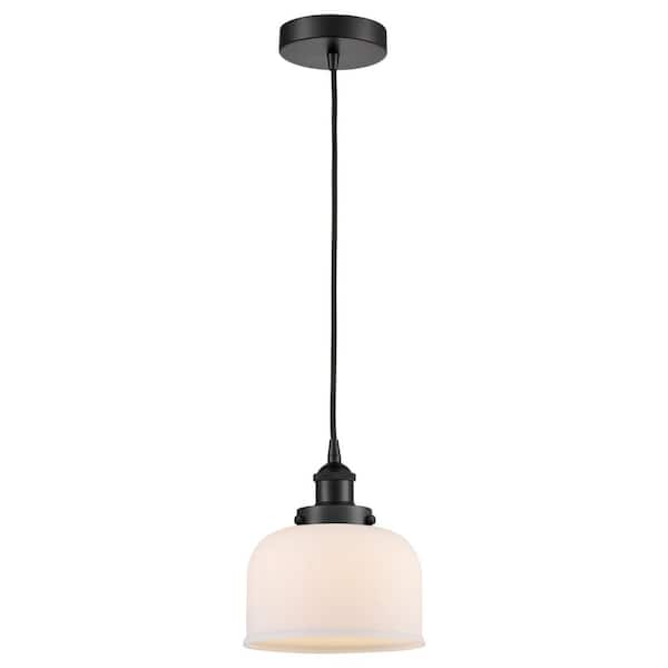 Bell 60-Watt 1-Light Matte Black Standard Mini Pendant Light with Matte White Glass, No Bulbs Included