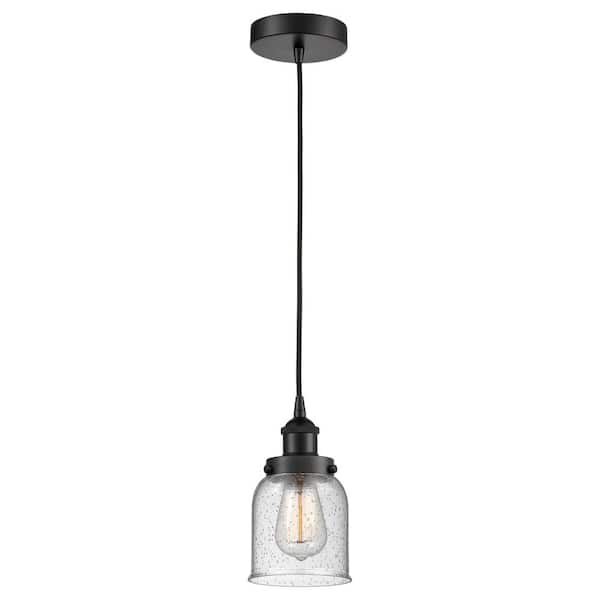 Bell 60-Watt 1-Light Matte Black Standard Mini Pendant Light with Seeded Glass Shade, No Bulbs Included