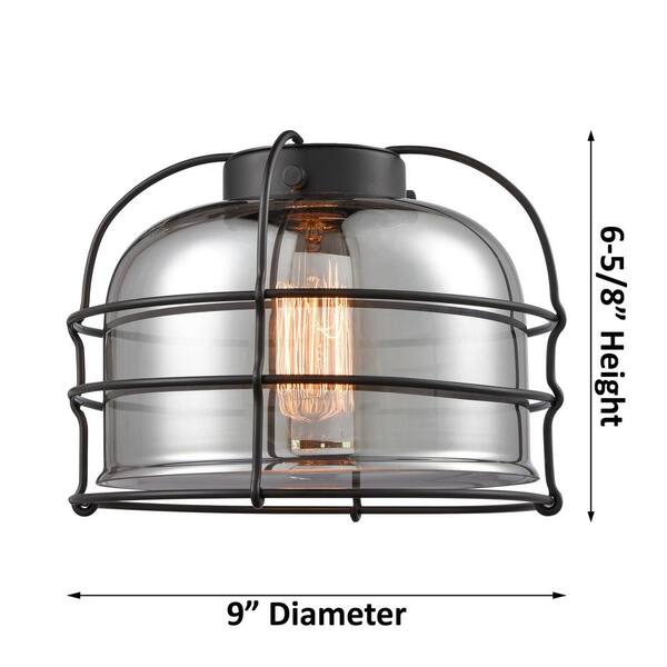 Bell 8 in. 1-Light Matte Black Industrial Semi-Flush Mount with Clear Glass Shade