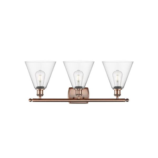 Berkshire 28 in. 3-Light Antique Copper, Clear Vanity Light with Clear Glass Shade