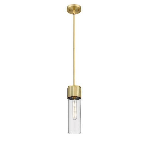 Bolivar 100-Watt 1 Light Brushed Brass Shaded Pendant Light with Clear glass Clear Glass Shade