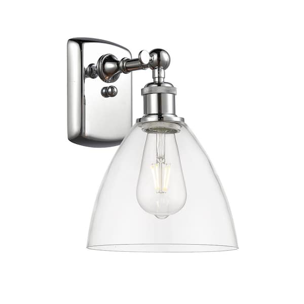 Bristol Glass 1-Light Polished Chrome, Clear Wall Sconce with Clear Glass Shade