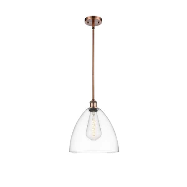 Bristol Glass 60-Watt 1 Light Antique Copper Shaded Mini Pendant Light with Clear glass Clear Glass Shade