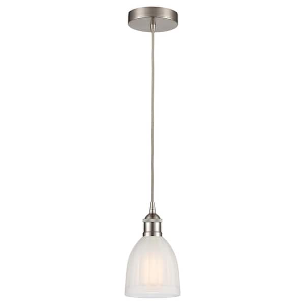 Brookfield 60-Watt 1-Light Brushed Satin Nickel Standard Mini Pendant Light with Painted Glass Shade, No Bulbs Included