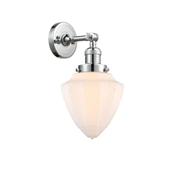 Bullet 1-Light Matte White, Polished Chrome Wall Sconce with White Glass Shade