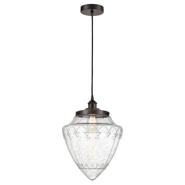 Bullet 60-Watt 1-Light Oil Rubbed Bronze Standard Mini Pendant Light with Seeded Glass Shade, No Bulbs Included