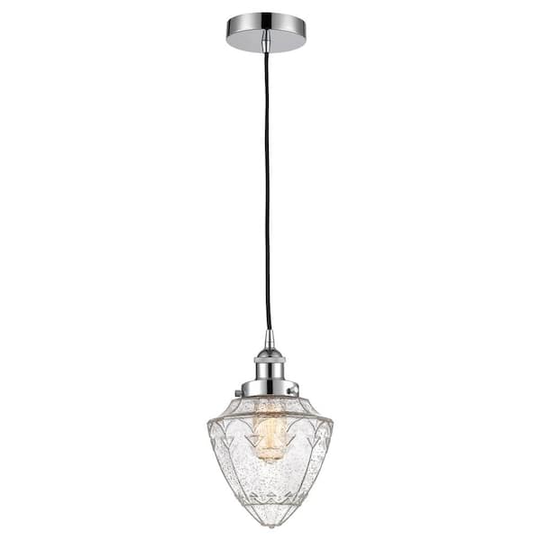 Bullet 60-Watt 1-Light Polished Chrome Standard Mini Pendant Light with Seeded Glass Shade, No Bulbs Included