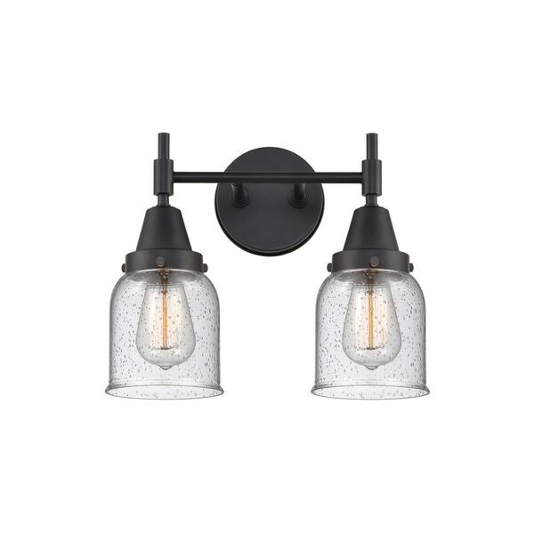 Caden 14 in. 2 Light Matte Black, Seedy Vanity Light with Clear Glass Shade
