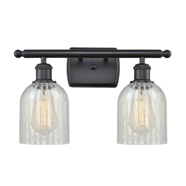 Caledonia 16 in. 2 Light Matte Black, Mouchette Vanity Light with Clear Glass Shade