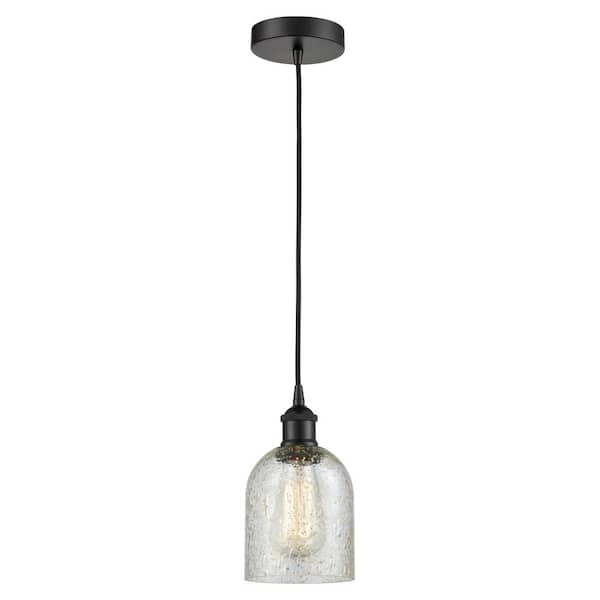 Caledonia 60-Watt 1-Light Matte Black Standard Mini Pendant Light with Painted Glass Shade, No Bulbs Included