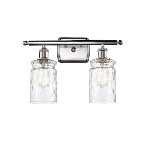 Candor 16 in. 2 Light Clear Water Glass, Brushed Satin Nickel Vanity Light with Clear Glass Shade
