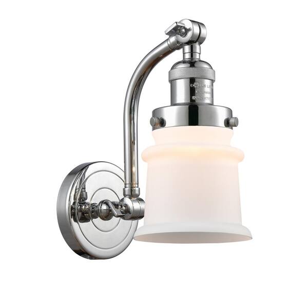 Canton 1-Light Matte White, Polished Chrome Wall Sconce with White Glass Shade