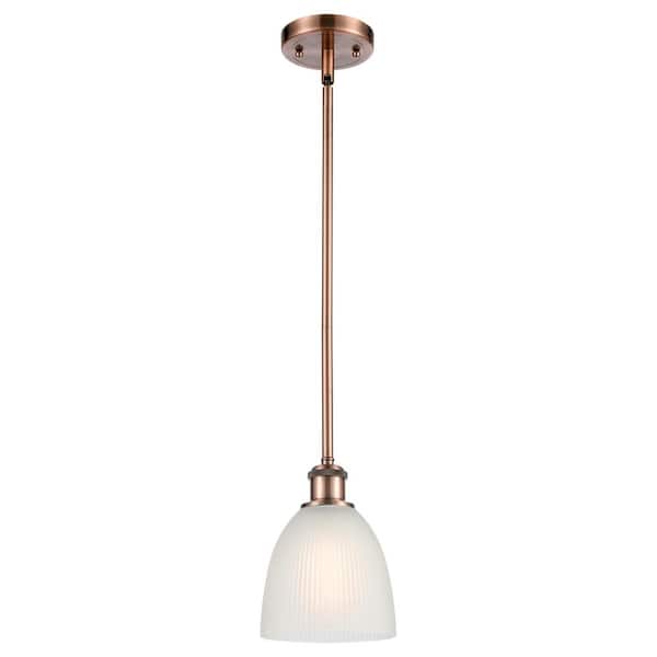 Castile 100-Watt 1-Light Antique Copper Standard Mini Pendant Light with Painted Glass Shade, No Bulbs Included