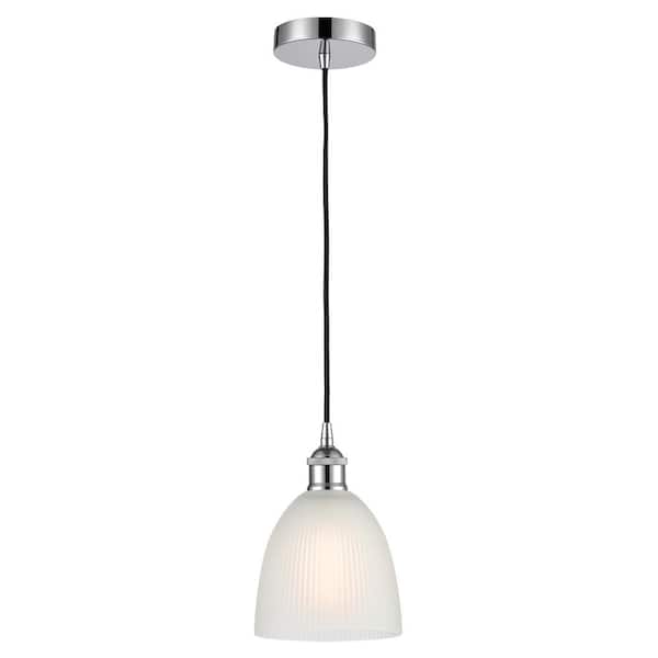 Castile 60-Watt 1-Light Polished Chrome Standard Mini Pendant Light with Painted Glass Shade, No Bulbs Included