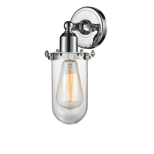 Centri 1-Light Polished Chrome, Clear Wall Sconce with Clear Glass Shade