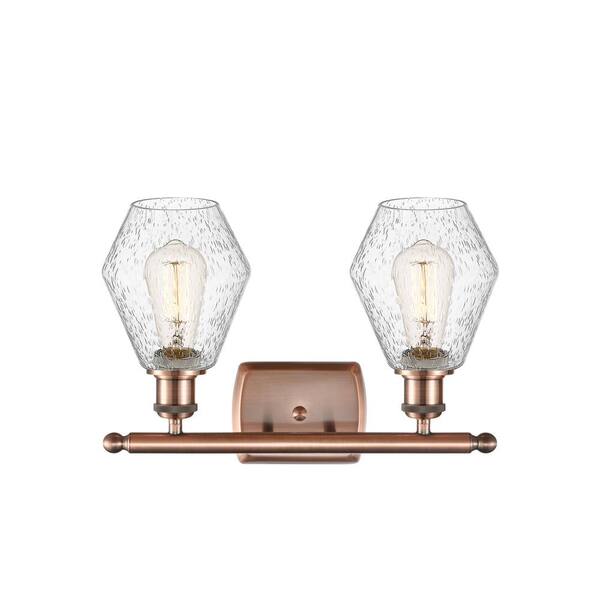 Cindyrella 16 in. 2 Light Antique Copper, Seedy Vanity Light with Clear Glass Shade