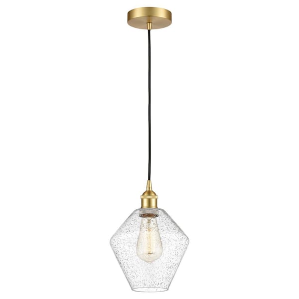 Cindyrella 60-Watt 1-Light Satin Gold Standard Mini Pendant Light with Seeded Glass Shade, No Bulbs Included