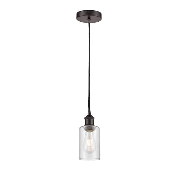Clymer 100-Watt 1-Light Oil Rubbed Bronze Shaded Mini Pendant Light with Seeded Glass Seeded Glass Shade