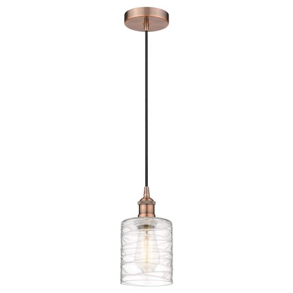 Cobbleskill 60-Watt 1-Light Antique Copper Standard Mini Pendant Light with Clear Glass Shade, No Bulbs Included