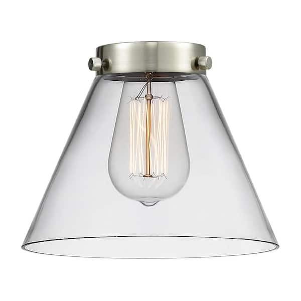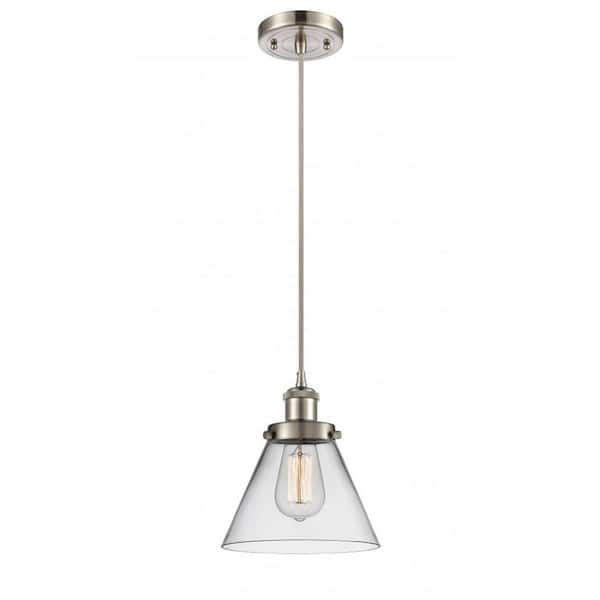 Cone 1-Light Brushed Satin Nickel Shaded Pendant Light with Clear Glass Shade