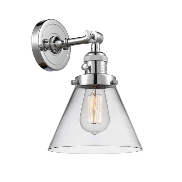 Cone 1-Light Clear, Polished Chrome Wall Sconce with Clear Glass Shade