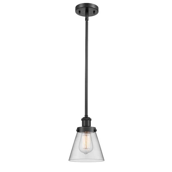 Cone 1 Light Matte Black Shaded Pendant Light with Clear Glass Shade