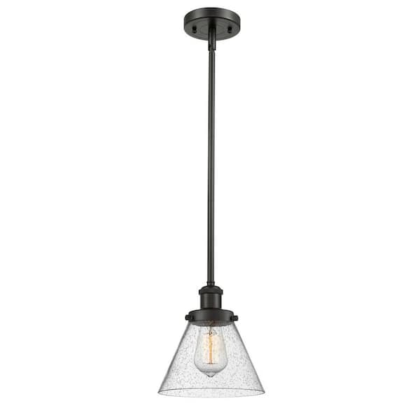 Cone 1-Light Oil Rubbed Bronze Shaded Pendant Light with Seedy Glass Shade