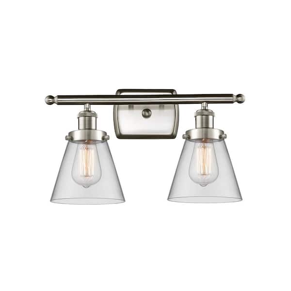 Cone 16 in. 2 Light Brushed Satin Nickel, Clear Vanity Light with Clear Glass Shade