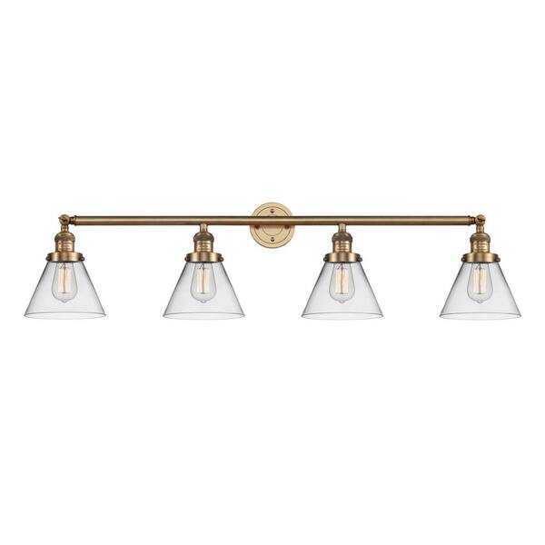 Cone 43.75 in. 4 Light Brushed Brass, Clear Vanity Light with Clear Glass Shade